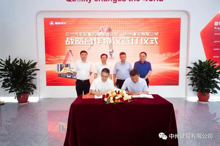 中州建設(shè)與三一汽車起重機(jī)械舉行戰(zhàn)略合作協(xié)議簽署及700噸履帶起重機(jī)交付儀式