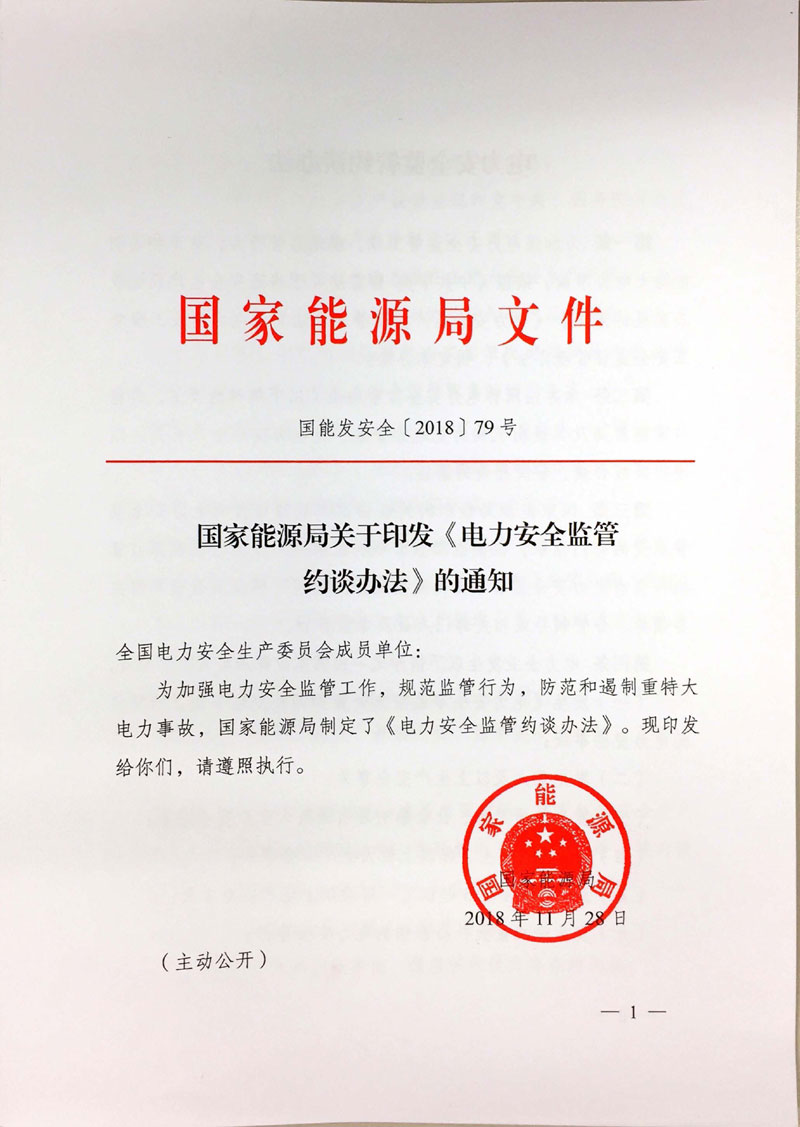 國家能源局印發(fā)《電力安全監(jiān)管約談辦法》的通知指出,電力企業(yè)發(fā)生以下情形之一由國家能源局負責(zé)組織約談: